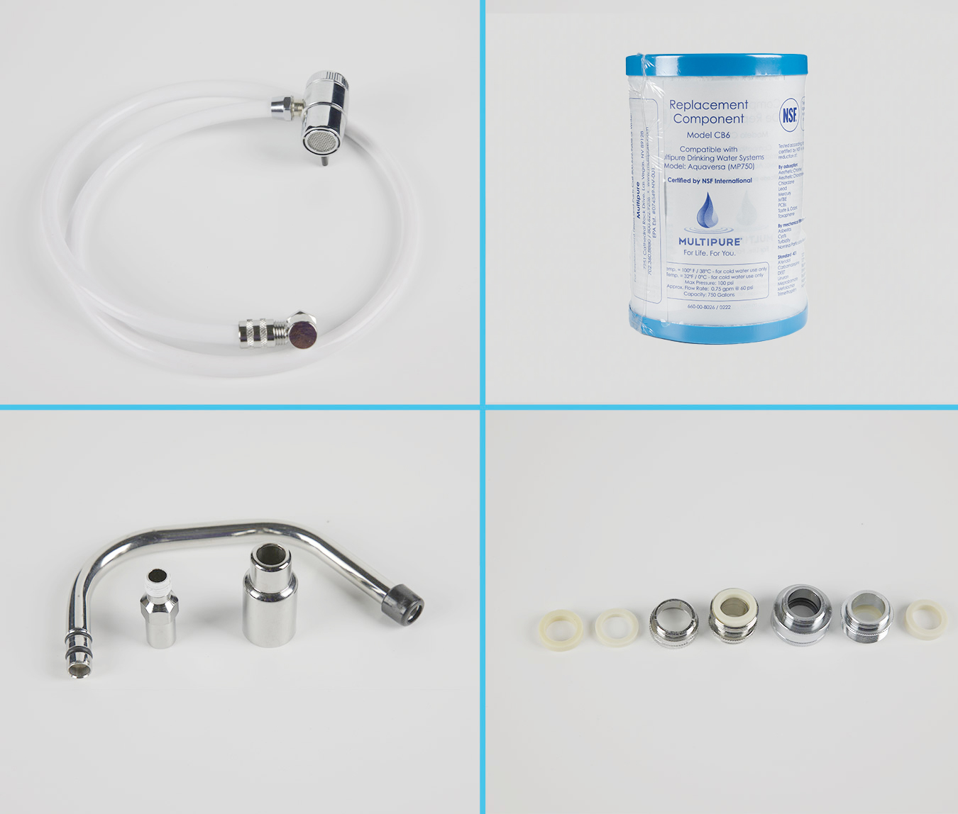 Systemy wody pitnej Multipure® zostały zaprojektowane tak, aby zapewnić najwyższą wydajność, bezpieczeństwo i wygodę. Są proste w obsłudze oraz posiadają dożywotnią gwarancję (na obudowę ze stali nierdzewnej). Wymienny filtr o potrójnym działaniu został opracowany przy użyciu materiałów, które zapewniają wodę pitną najwyższej jakości bez usuwania niezbędnych nam zdrowych, naturalnych minerałów. Filtry Multipure® łączą filtrację mechaniczną, adsorpcję elektrokinetyczną i adsorpcję fizyczną, aby zapewnić najbardziej efektywną możliwą redukcję zanieczyszczeń. Multipure® oferuje najwyższą skuteczność ograniczania zanieczyszczeń zagrażających zdrowiu, a produkty zostały wielokrotnie przetestowane i certyfikowane przez NSF® International, pod kątem redukcji najszerszego zakresu zanieczyszczeń zgodnie z normą NSF/ANSI nr 53 oraz normą NSF/ANSI nr 42. Dostępnych jest wiele systemów dostosowanych do każdego budżetu.